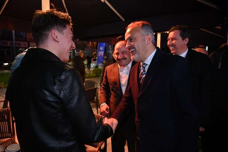 Konuşmalarının ardından, AK Parti Bursa Milletvekili Mustafa Varank ve Ayhan Salman, Bursa Büyükşehir Belediye Başkanı Alinur Aktaş ve İneögl Belediye Başkanı Alper Taban, Hükümet Meydanı’ndaki Burfaş Kafe’de barista önlüklerini giyerek gençlerin sipariş ettiği kahveleri hazırladı.