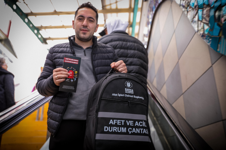 Bursa Büyükşehir Belediye Başkanı Mustafa Bozbey, daha sonra Beşeveler BursaRay İstasyonu’ndan metroya binerek vatandaşlarla birlikte Şehreküstü İstasyonu’na kadar yolculuk yaptı. Başkan Mustafa Bozbey tarafından vatandaşlara AKOM tarafından hazırlanan ve içinde ilk yardım kiti, battaniye, radyo, el feneri, diş fırçası, yağmurluk, düdük ve çöp torbası bulunan afet ve acil durum çantaları dağıtıldı. Yolculuk boyunca Bursalılarla afet konusunda sohbet eden Başkan Mustafa Bozbey, afetlere hazırlıklı olmanın önemine vurgu yaptı.
