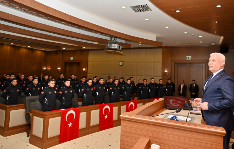 Bursa Büyükşehir Belediyesi’nde 83’ü itafiye eri, 1’i uzman yardımcısı ve 1’i sosyal çalışmacı olmak üzere toplam 85 aday memur personelin asli memuriyete geçişi nedeniyle yemin töreni düzenlendi. İnsan Kaynakları ve Eğitim Dairesi Başkanlığı tarafından Büyükşehir Belediyesi Meclis Salonu’nda düzenlenen yemin törenine, Büyükşehir Belediye Başkanı Mustafa Bozbey de katıldı.