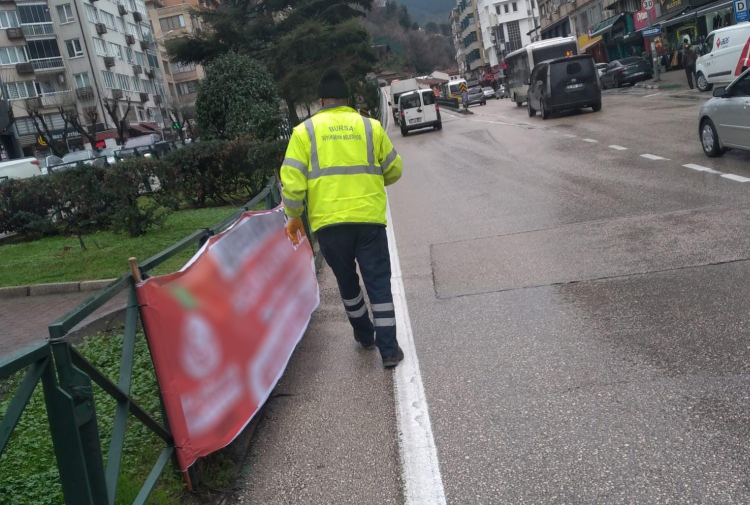 Bursa Büyükşehir Belediyesi, kenti daha estetik ve yaşanabilir hale getirme çalışmaları kapsamında ana arterlerdeki izinsiz afişleri tek tek tespit ederek kaldırdı.