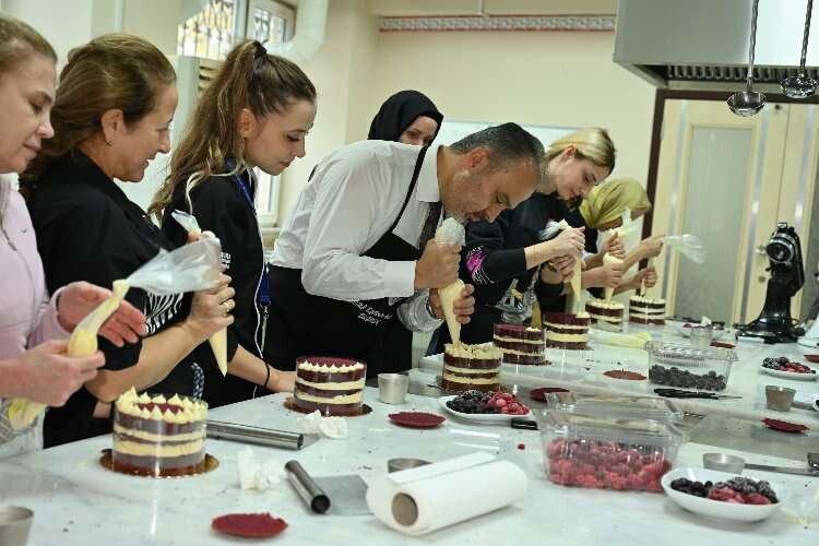 Program sonunda eğitim sınıflarını gezen Başkan Alinur Aktaş, önlük giyerek mutfaktaki hünerlerini sergiledi. Kursiyerlerle birlikte el yapımı makarna ve yaş pasta yapan Başkan Aktaş, daha sonra yaptığı ürünleri kursiyerlere ikram etti.
