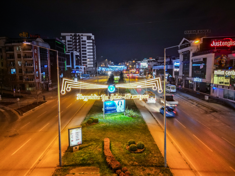 Bursa Büyükşehir Belediyesi, Fatih Sultan Mehmet Bulvarı, Setbaşı, Gökdere, Fomara, 15 Temmuz Demokrasi Meydanı, Hanlar Bölgesi ve Teleferik Meydanı gibi yoğun yaya ve araç trafiğine sahip noktaları Ramazan ayına özel ışıklandırmalarla süsledi.