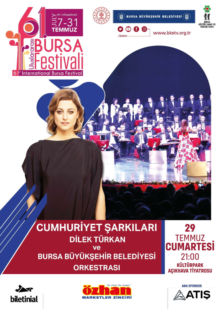 Bursa Büyükşehir Belediyesi adına Bursa Kültür Sanat ve Turizm Vakfı (BKSTV) tarafından Kültür ve Turizm Bakanlığı’nın katkılarıyla, Atış Şirketler Grubu ana sponsorluğunda bu yıl 61’si düzenlenecek olan ‘Uluslararası Bursa Festivali, Uludağ Premium sponsorluğunda ünlü söz yazarı ve piyanist Karsu ve Bursa Bölge Devlet Senfoni Orkestrası’nın konseri ile başlıyor.