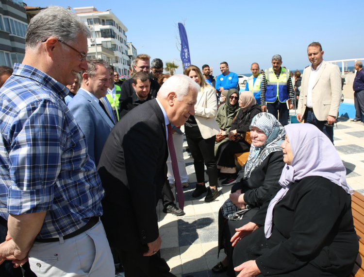 Mudanya sahilinde yürütülen temizlik çalışmalarını yerinde inceleyen Bursa Büyükşehir Belediye Başkanı Mustafa Bozbey, temizlik ekiplerine kolaylıklar dilerken vatandaşlarla da sohbet etti. Mudanya Belediye Başkanı Deniz Dalgıç, Büyükşehir Belediyesi Genel Sekreter Yardımcısı Mehmet Emin Direkçi, Park ve Bahçeler Dairesi Başkanı Hakan Tanrıöver ve Büyükşehir Belediyesi yöneticilerinin de hazır bulunduğu ziyarette yetkililerden bilgi alan Başkan Mustafa Bozbey, Bursa genelinde bir bahar temizliği başlattıklarını söyledi. Baharla birlikte daha temiz bir Bursa arzuladıklarını belirten Başkan Mustafa Bozbey, “Sokaklarımızın, sahillerimizin temiz olmasını istiyoruz. Sokaklar hepimize ait ve buraların temiz kalması hepimizin sorumluluğundadır. Cadde ve sokaklarımızın temiz olması için ekiplerimiz her yerde özveriyle çalışmaları yürütüyor. Halkamızın da aynı özveriyi göstermesini istiyoruz. Ancak bu şekilde Bursa’ya gelen turistler daha temiz bir kent görecektir” dedi.