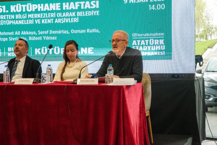Bursa Büyükşehir Belediyesi, kütüphanelerin ve kent arşivlerinin geleceğini toplumun tüm paydaşlarıyla birlikte şekillendirmek ve yeni hizmet anlayışları geliştirmek amacıyla 61. Kütüphaneler Haftası etkinlikleri kapsamında ,"Üreten Bilgi Merkezleri Olarak Belediye Kütüphaneleri ve Kent Arşivleri" konulu söyleşi programı düzenledi. Atatürk Stadyumu Kütüphanesi’nde düzenlenen programda Prof. Dr. Mehmet Ali Akkaya, Prof. Dr. Bülent Yılmaz, Büyükşehir Belediyesi Kütüphane Şube Müdürü Özge Sivrioğlu, Şeref Demirtaş ve Osman Kutlu konuşmacı olarak yer alırken, Büyükşehir Belediyesi Başkanvekili Mehmet Aydın Salız, Büyükşehir Belediyesi Kültür ve Sosyal İşler Dairesi Başkanı Şafak Baba Pala, STK temsilcileri ve çok sayıda vatandaş da programı ilgiyle takip etti.
