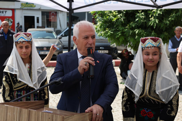 Tören alanında alkışlar eşliğinde karşılanan Başkan Bozbey, “Domaniç'i Bursa'nın 18. ilçesi olarak görüyoruz. Seçimden önce bu meydanda konuşma yapmıştım. Domaniçli büyüklerimiz, ‘Başkanım hiç merak etme, o iş tamam’ demişlerdi. Bugün buradayız. Söz verdiğimiz gibi Domaniç’i 18. ilçemiz olarak görüyoruz ve destekliyoruz. Üretim yapan vatandaşlarımıza bir nebze olsun katkı sağlamak, onların yanlarında olduğumuzu göstermek maksadıyla 44 bin metre damlama sulama hortumu ve 2.200 litre sıvı gübre dağıtımı yaptık. Çiftçimizin yüzü gülsün istiyoruz” dedi.