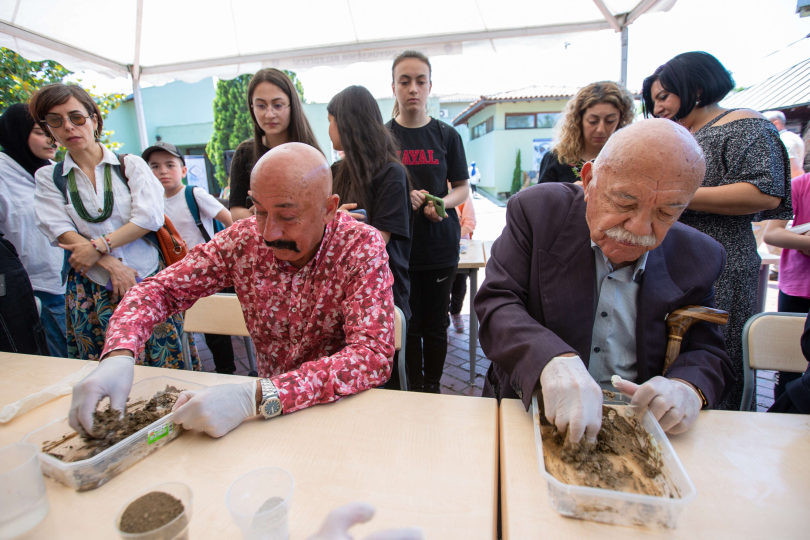 Serginin ardından düzenlenen Tohum Topu Atölyesi de renkli görüntülerine sahne oldu. Başkanvekili Fethi Yıldız ve öğrenciler, eldiven giyip, tohum topları hazırladı.