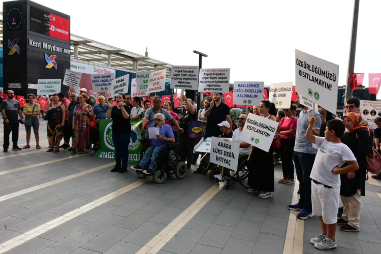Bursa Kent Konseyi Engelliler Meclisi, engelli bireyler için uygulanan Özel Tüketim Vergisi (ÖTV) muafiyetinin kaldırılacağı iddialarına ilişkin seslerini duyurmak ve anayasal haklarına sahip çıkmak için Kent Meydanı’nda basın açıklaması düzenledi.