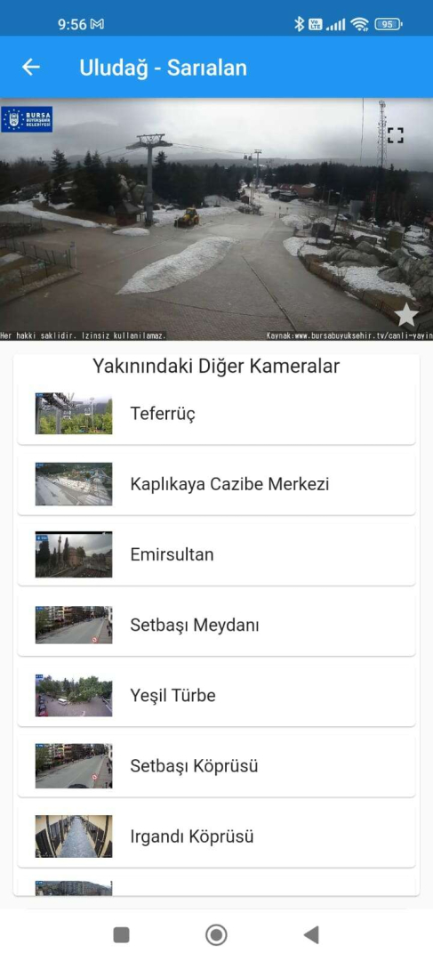 Bursa Büyükşehir Belediyesi’nin 2012 yılında 2 nokta ile başlattığı şehir kameraları uygulaması, bugün 82’si trafik ve 31’i turistik olmak üzere 113 noktaya ulaştı. Özellikle Bursalıların yol durumu hakkında bilgi almak için yoğun olarak kullandığı trafik kameralarına son olarak Beşyol, Kestel, Gümüştepe, Mimar Sinan 2, Ata Bulvarı, Yunus Emre ve Kent Meydanı Kavşakları ile Eski Stadyum Cadde Darmstad Cadde, FSM Bulvarı- Beşevler Girişi ile Akademi Cadde Akpınar Cadde de eklendi.
