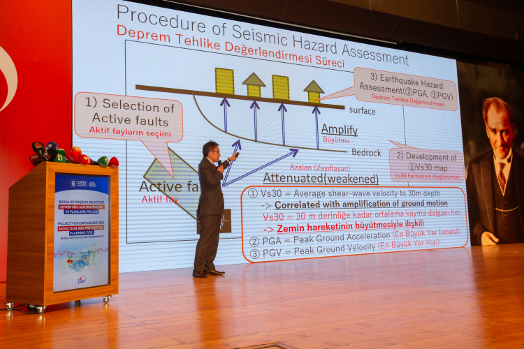 Bursa Büyükşehir Belediyesi’nin Japonya Uluslararası İşbirliği Ajansı (JICA) ile birlikte yürüttüğü ‘Deprem Risk Azaltma ve Önleme Planlama Projesi’nin ilk çıktıları olan ‘Deprem tehlike değerlendirmesi', 'Bina risk değerlendirmesi', 'Altyapı ve kamu bina risk değerlendirmesi' sonuçları kamuoyuyla paylaşıldı.