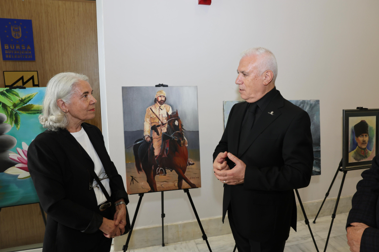 Bursa Büyükşehir Belediye Başkanı Mustafa Bozbey, Heykel’de düzenlenen resmi anma törenlerinin ardından resim sergilerine katıldı. Sergilerde yer alan çalışmaları tek tek inceleyen Başkan Mustafa Bozbey, resimlerin hikâyeleri hakkında bilgi aldı. Bursa Kent Konseyi Ressamlar Çalışma Grubu’nun hazırladığı ‘Atatürk ve Cumhuriyet’in Işığında’ serginin açılışında konuşan Başkan Mustafa Bozbey, Cumhuriyet’in kurucusu Ulu Önder Gazi Mustafa Kemal Atatürk’ün anısını yaşatmak adına çeşitli programlar düzenlediklerini söyledi. 10 Kasım’ın bir yas günü olmadığını, bir anma günü olduğunu vurgulayan Başkan Mustafa Bozbey, “Bu ülkenin her bireyinin, 365 gün, 24 saat, her zaman ve her an Ulu Önder Mustafa Kemal Atatürk’ün gösterdiği yolda ve bilimin ışığında Cumhuriyet’e sahip çıkma sorumluluğunu hissetmesi gerekir. Cumhuriyetimize halel getirecek herhangi bir davranış karşısında da mücadeleyi yürütebilmesi lazım. Atatürk’ün fikirlerini ve Cumhuriyet’in değerlerini artık anladığımızı düşünüyorum. Güzel ülkemizi korumak ve kollamak ancak Atatürk’ün gösterdiği hedef doğrultusunda olacaktır” dedi.
