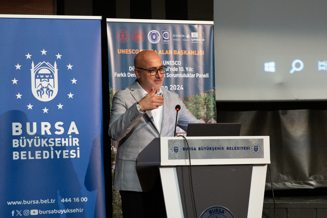 Programda konuşan Genel Sekreter Yardımcısı Mehmet Yıldız, UNESCO Dünya Mirası Listesi’ne dahil olmanın zor bir süreç olduğunu söyledi. Listeye dahil olmanın ardından alanlardaki sürdürülebilirliği sağlamanın daha önemli olduğunu belirten Mehmet Yıldız, Bursa’nın farklı medeniyetlere ev sahipliği yapmış, Osmanlı Devleti’nin kuruluşuna sahne olmuş, eşsiz tarih, kültür ve tabiat güzelliklerine sahip bir kent olduğunu ifade etti. Birçok farklı mimari özellikleri taşıyan eserlerle dolu Bursa’nın aynı zamanda Türkiye’nin kalkınmasına katkı sağlayan lokomotif konumunda olduğunu anlatan Yıldız, “Dünya Miras Listesi’ne girmek, yalnızca yurdumuz için değil, tüm dünya için zor bir süreç. Listeye dahil olduktan sonra alanların sürdürülebilirliğini sağlamak ise büyük bir sorumluluk. Bugüne kadar korumuş olduğumuz alanlarımızı bundan sonra da korumamız gerekiyor. Başta Bursa Alan Başkanlığı’mız olmak üzere kentimizin bu büyük gururunda emeği olan, desteklerini esirgemeyen tüm kurum, kuruluş ve katılımcılara teşekkür ediyorum” dedi.