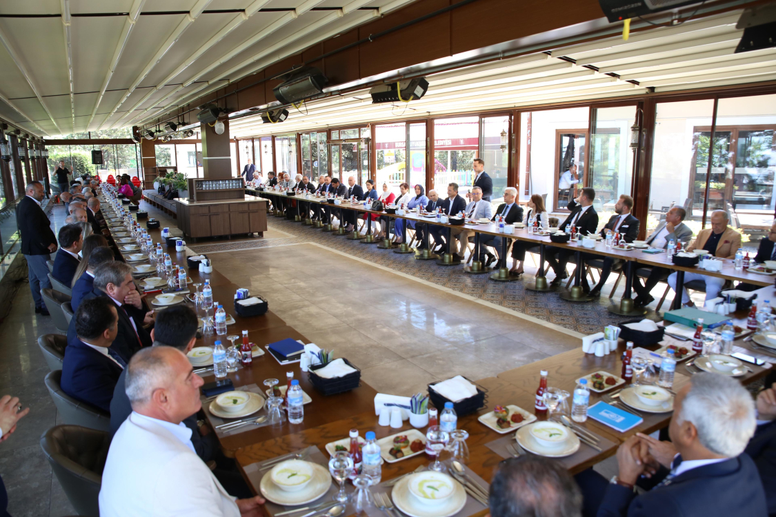 Bursa Büyükşehir Belediye Başkanı Mustafa Bozbey, önümüzdeki 5 yılda kente değer katacak olan çalışmalara birlikte imza atacağı yönetim kadrosuyla buluştu. Dobruca Sosyal Tesisleri’ndeki toplantıya, Büyükşehir Belediye Başkanı Mustafa Bozbey’in yanı sıra Genel Sekreter Doç. Dr. Ergül Halisçelik, genel sekreter yardımcıları, daire başkanları, BUSKİ yöneticileri, bağlı iştiraklerin yönetim kurulu başkanları ve genel müdürleri ile başkan danışmanları katıldı. Belediyenin üst yöneticilerinin birbirini tanıma fırsatı bulduğu toplantıda, Büyükşehir Belediyesi’nin 2024-2029 stratejik plan çalışmaları da ele alındı.