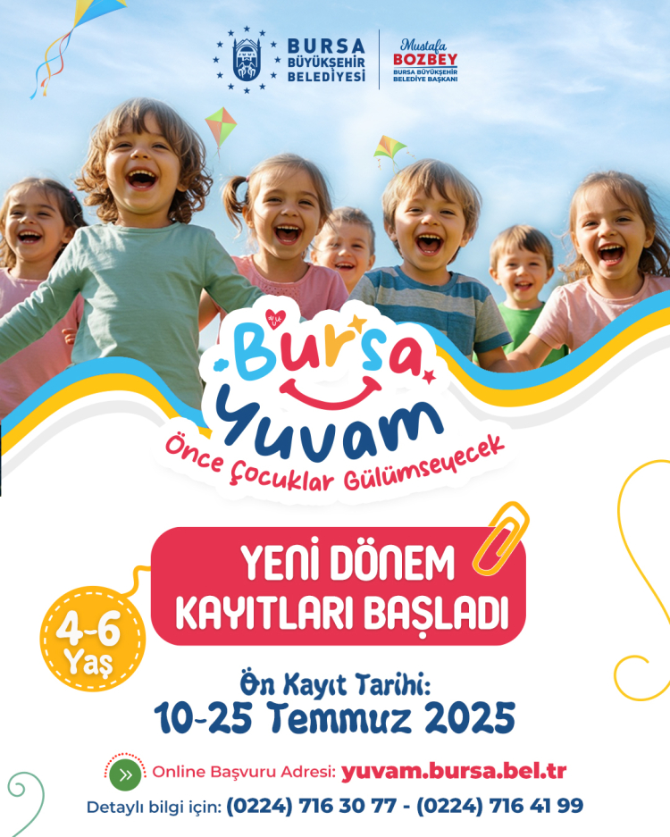 Bursa Büyükşehir Belediyesi’nin ‘Önce çocuklar gülümseyecek’ teması ile hayata geçirdiği ‘Bursa Yuvam Çocuk Etkinlik Merkezleri'nde, 2025-2026 yılı yeni dönemi ön kayıtları başladı.
