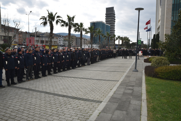 Törene, Büyükşehir Belediyesi Başkanvekili Yalçın Işıkyıldız, Büyükşehir Belediyesi Genel Sekreteri Doç. Dr. Ergül Halisçelik, Genel Sekreter Yardımcıları Mehmet Yıldız ve Mehmet Emin Direkçi, İtfaiye Dairesi Başkanı Canalp Berkdemir, Büyükşehir Belediyesi yöneticileri, şehit itfaiye erinin ailesi ve mesai arkadaşları katıldı. Saygı duruşu ve İstiklal Marşı’nın okunmasının ardından konuşan Büyükşehir Belediyesi Başkanvekili Yalçın Işıkyıldız, çok üzgün olduklarını belirterek şehit Burak Dağtekin’in ailesine ve çalışma arkadaşlarına sabırlar diledi.