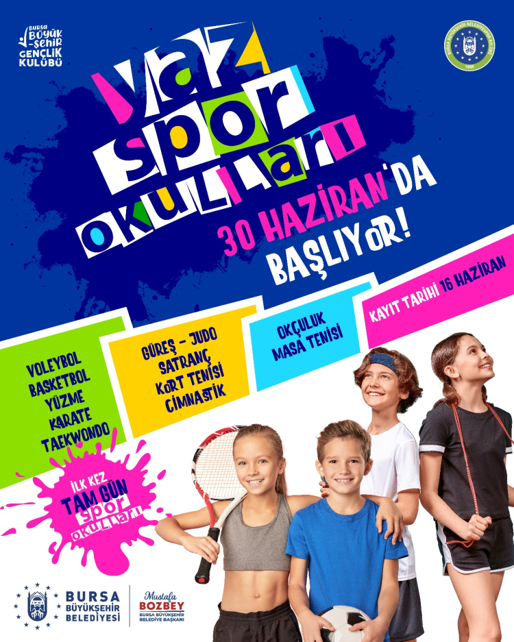 Bursa’da 7’den 70’e herkesin sporla buluşmasını amaçlayan Büyükşehir Belediyesi, Yaz Spor Okulları’nda çocukları ağırlamaya hazırlanıyor. Gençlik ve Spor Hizmetleri Dairesi Başkanlığı koordinasyonunda Büyükşehir Belediyespor iş birliği ile hayata geçirilen; yaz tatilinde çocukların daha enerjik ve eğlenceli zaman geçirecekleri, bununla beraber sosyal, kültürel ve spor faaliyetlerini de geliştirecekleri Yaz Spor Okulları, 30 Haziran’da kapılarını açıyor. 4-16 yaş arası çocukların yararlanacağı Yaz Spor Okulları için kayıtlar başladı. Üçer haftalık 3 dönem halinde gerçekleştirilecek Yaz Spor Okulları’nda ilk dönem 30 Haziran-19 Temmuz, ikinci dönem 21 Temmuz-9 Ağustos, üçüncü dönem ise 11 Ağustos-30 Ağustos tarihlerini kapsıyor.