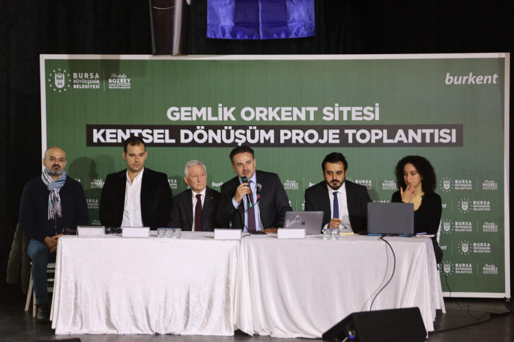 Birinci derece deprem kuşağında yer alan Bursa'yı olası depremin yıkıcı etkilerine karşı daha dirençli hale getirmek için projeler geliştiren Bursa Büyükşehir Belediyesi, Kuzey Anadolu Fay Hattı üzerinde bulunan Gemlik’te de kentsel dönüşüm çalışmalarını sürdürüyor. Büyükşehir Belediyesi iştiraklerinden Burkent tarafından düzenlenen ‘Gemlik Orkent Sitesi Kentsel Dönüşüm Projesi’ değerlendirme toplantısı, Gemlik Belediyesi Cemil Meriç Kültür Merkezi’nde yapıldı. Toplantıya, Gemlik Belediye Başkanı Şükrü Deviren, Burkent Genel Müdürü İnan Keser, Burkent yöneticileri ve site sakinleri katıldı.