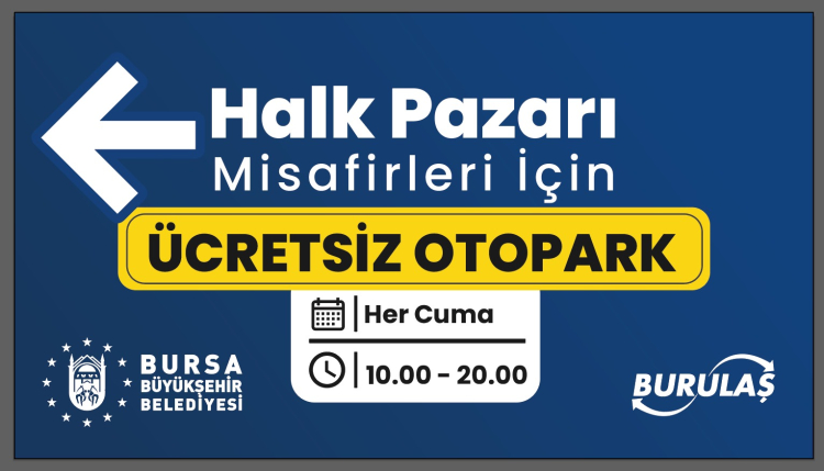 Bursa Büyükşehir Belediyesi, Mudanya ilçesindeki BURULAŞ’a ait otoparkın cuma günleri vatandaşların rahatlıkla pazar alışverişini yapabilmesi için 10.00-20.00 saatleri arasında ücretsiz olarak hizmet vereceğini açıkladı.