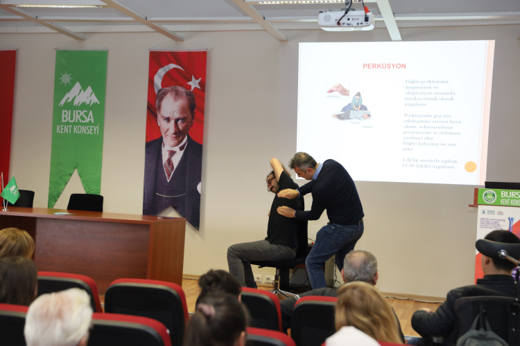 Bursa Büyükşehir Belediyesi tarafından Pulmoner Rehabilitasyon Haftası etkinlikleri kapsamında doğru solunum tekniklerini bilinir kılmak amacıyla seminer düzenlendi.