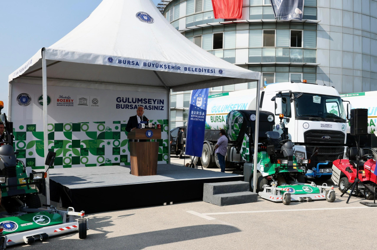 Bursa Büyükşehir Belediyesi, kentin parklarını, bahçelerini, sahillerini, refüjlerini daha hızlı, daha etkin ve daha çevreci yöntemlerle korumak ve kente nefes aldırmak amacıyla Tarım Peyzaj A.Ş. bünyesine kattığı yeni araçları düzenlenen törenle hizmete aldı.