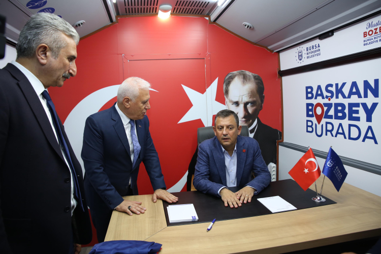 Konuşmanın sonunda CHP Genel Başkanı Özgür Özel’e günün anısına 16 sırt numaralı Mustafakemalpaşaspor forması hediye edildi. Genel Başkan Özgür Özel daha sonra ‘Başkan Bozbey Burada’ otobüsünü ziyaret ederek Başkan Mustafa Bozbey’den proje hakkında bilgi aldı.