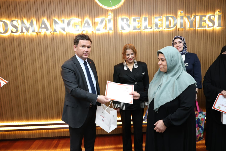 Osmangazi Belediyesi Meslek Edindirme Kursları (OSMEK) bünyesindeki okuma yazma kursuna katılan 26 kursiyer, mezuniyet heyecanı yaşadı. Sertifikalarını Başkan Erkan Aydın’ın elinden alan kadınların heyecanı ve mutluluğu ise görülmeye değerdi.