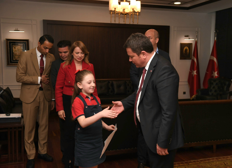 23 Nisan Ulusal Egemenlik ve Çocuk Bayramı’nın sevincini yaşayan çocuklar, Osmangazi Belediye Başkanı Erkan Aydın’ı ziyaret etti. Başkan Aydın, bu anlamlı gün dolayısıyla koltuğunu, Sadi Etkeser İlkokulu Okulu öğrencisi Zeynep Azra Bilik, Dilek Özer Ortaokulu öğrencisi Selim Anıl Şen ve Sınav Koleji öğrencisi Duru Kılıç’a devretti. Ailelerinin ve öğretmenlerinin de eşlik ettiği temsili törende Başkan Aydın’ın makamına oturan çocuklar, unutamayacakları bir anı yaşadı.