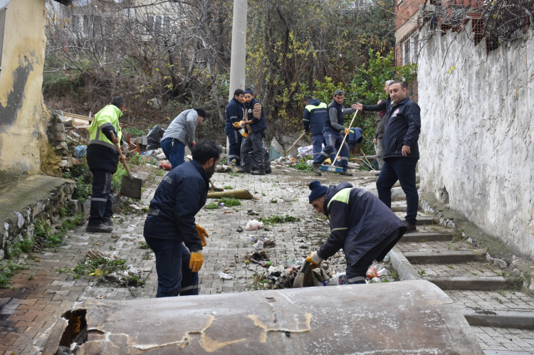 Gemlik Belediyesi Temizlik İşleri Müdürlüğü, ilçede sürdürdüğü temizlik çalışmalarına bir yenisini daha ekleyerek Yenimahalle Kirişçi Sokak’ta ayrıntılı bir temizlik yaptı. 16 kişilik temizlik personeli, sokakta biriken evsel atıkları, molozları ve eski mobilyaları kamyonlarla toplayarak bertaraf edilmesini sağladı.