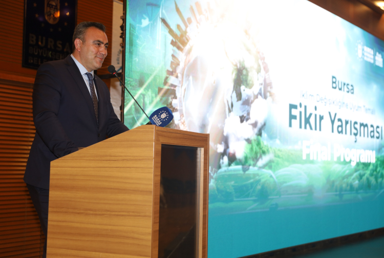 Final programına Bursa Büyükşehir Belediye Başkanı Mustafa Bozbey’i temsilen katılan Büyükşehir Belediyesi Başkanvekili Mehmet Aydın Saldız, başta tarım olmak üzere iklim değişikliğinin etkilerini her alanda yaşadıklarını söyledi. Geleceği ve geleceğin kentlerini planlarken iklimi göz önünde bulundurmak gerektiğini belirten Saldız, bu doğrultuda ‘İklim Değişikliğine Uyum’ temalı fikir yarışması düzenlendiğini ifade etti. Yarışmayla birlikte kentin geleceğini birlikte yazmayı amaçladıklarını anlatan Saldız, “Tüm proje sahiplerini tebrik ediyorum. Belediyemiz bünyesindeki 9 daire başkanlığı bu sürecin bir parçası oldu. Birlikte çalıştık, birlikte yön verdik. Katılımcı, şeffaf yönetim anlayışımızın en güzel örneklerinden biri oldu. Jüri üyelerimize ve tüm proje sahiplerine teşekkür ediyorum. Ortaya konan fikirler göz ardı edilmeyecek. Bazıları yol haritası olacak, bazıları bütüncül stratejilere katkı sunacak ancak hiçbir fikir, bir köşede kalmayacak. Bizler ortak akla inanıyoruz, katılımcılığa inanıyoruz, bilime inanıyoruz. Bugün burada kazanan sadece projeler değil, kazanan Bursa oldu” dedi.