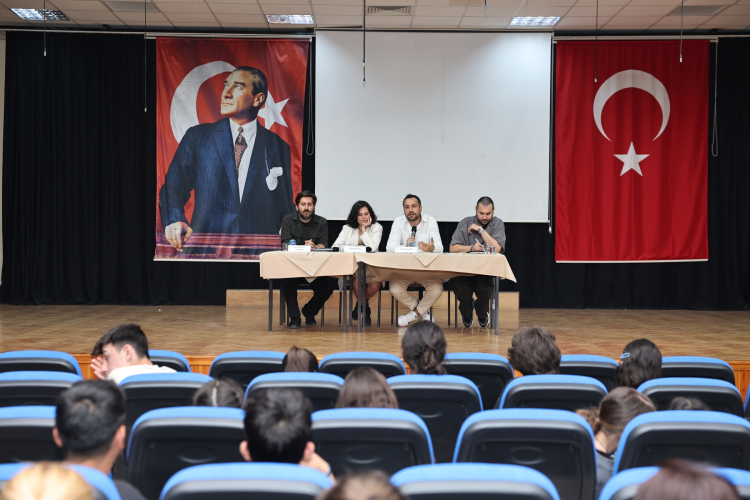 Nilüfer Belediyesi KentNKT tarafından düzenlenen “Oyun Yazma Programı 2024” kapsamında ana seçkiye alınan oyunların yazarları, Bursa Zeki Müren Güzel Sanatlar Lisesi Tiyatro Bölümü’nde söyleşi düzenledi. Okulun salonunda gerçekleşen söyleşiye öğrenciler ve öğretmenler yoğun ilgi gösterdi.