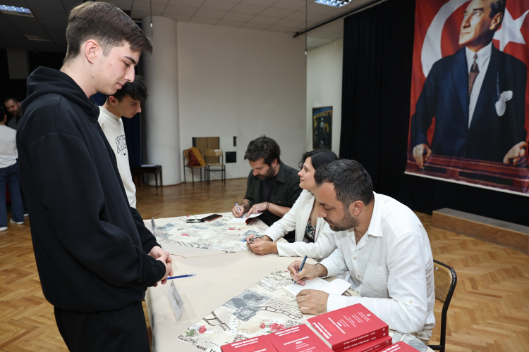 Söyleşinin ardından yazarlar, Nilüfer Belediyesi tarafından basılan ve okulun öğretmenleri ile öğrencilerine armağan edilen kitaplarını imzaladılar.