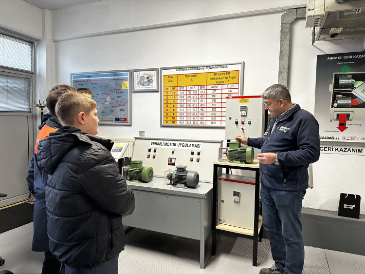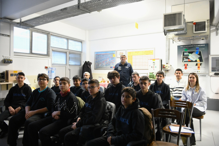 Oyak Renault Enerji Yöneticisi ve Elektrik Mühendisi Tuncay Kocausta öğrencilerle bir araya gelerek, enerji verimliliği ve yenilenebilir enerji kaynaklarının kullanımını basit deneylerle anlattı. Eğitim sonrasında öğrenciler, fabrikanın kompresör atölyesi, soğutma kulesi ve kazan dairesi gibi bölümlerini gezerek, sistemler hakkında detaylı bilgiler edindi.
