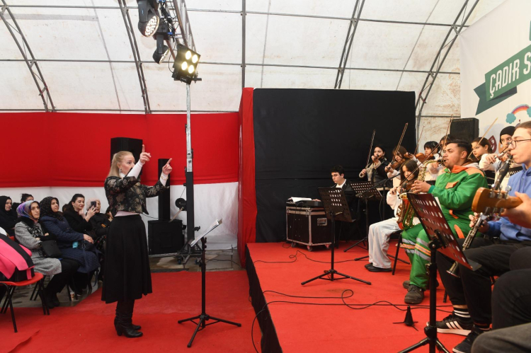 Osmangazili Belediyesi tarafından öğrencilerin sömestr tatilini en güzel şekilde geçirmesi için düzenlenen Yarıyıl Şenliği kapsamında Yunuseli Mahallesi’nde kurulan Çadır Kültür Sanat Merkezi ve Kütüphanesi’nde konser veren Osmangazi Belediyesi Gençlik Orkestrası ve Korosu, birbirinden güzel şarkıları öğrenciler için söyledi.