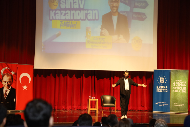 Bursa Büyükşehir Belediyesi, başarıya giden yolda gençlerin motivasyonunu artırmak ve doğru çalışma yöntemlerini göstermek amacıyla Gri Koç olarak bilinen Eğitimci-Yazar Gökhan Müftüoğlu’nun katılımıyla ‘Sınav Kazandıran Taktikler’ semineri düzenledi.