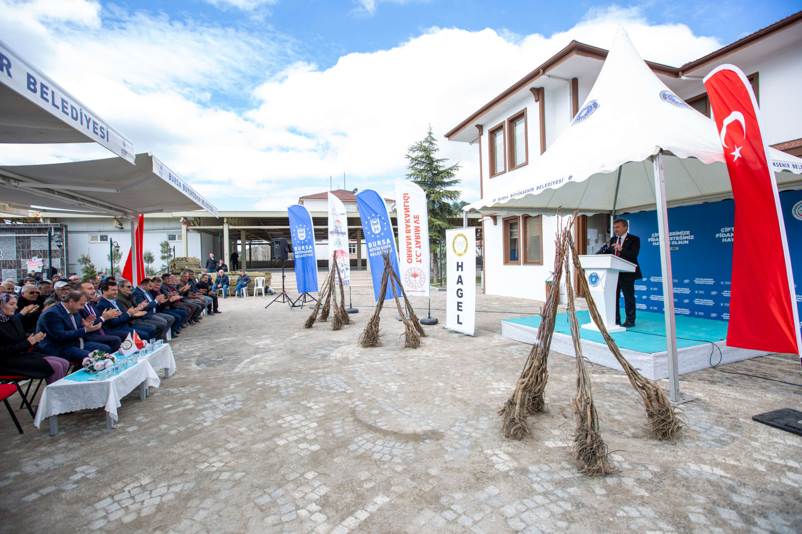 Bursa Büyükşehir Belediyesi, kırsal kalkınma hedefleri doğrultusunda Harmancıklı çiftçilere 6100 adet ceviz fidanı dağıttı.