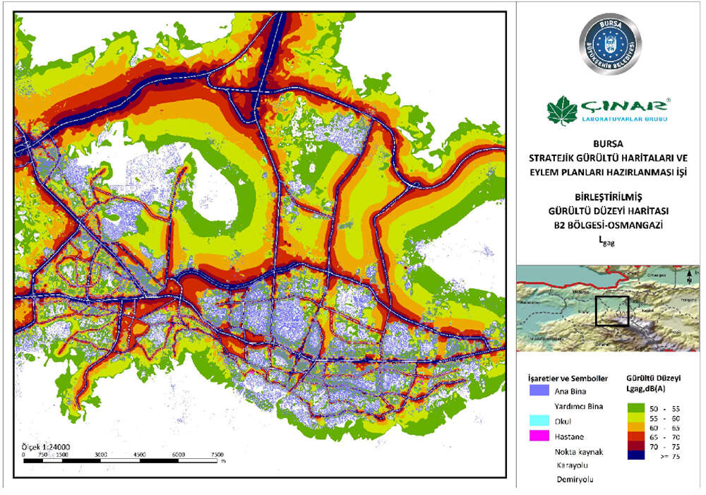 İlk çalışmamız 2013 yılında 3 merkez ilçeyi kapsayan stratejik gürültü haritaları hazırlayıp yayımlamak oldu. Sürecin devamında, stratejik gürültü haritası sonuçlarına göre hazırlanan çevresel gürültü eylem planı raporunu da yayımlanarak uygulamaya koyduk. Şimdilerde ise bu gürültü haritası ve sonrasında oluşturulan çevresel gürültü eylem planı raporunu tüm ilimiz bazında yayımlama sürecinde sona yaklaşmış bulunmaktayız. Amacımız, çevresel gürültüye maruz kalan halkımızın karşılaştığı sorunları önlemek için alınması gereken tedbirleri belirlemek. Bizden sonraki nesillere daha yaşanabilir bir Bursa bırakma gayreti ile bu hizmetleri her geçen yıl artırarak sürdürmekte kararlıyız” diye konuştu.