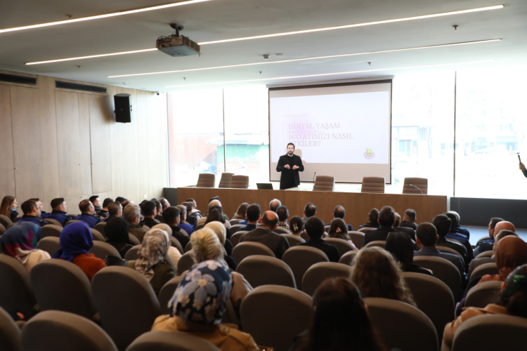 Konuşma sonrası Klinik Psikolog Yiğit Dursun, eğitime katılan personellere “Çalışma Hayatında Sağlıklı Dijital Yaşam ve Ekran Kullanımı Yönetimi” konulu eğitimi gerçekleştirdi.