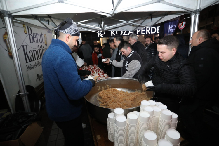 İnegöl Belediyesi’nin her kandilde farklı bir camide sürdürdüğü helva ikramı geleneği, Berat Kandilinde Lazlar Camii’nde gerçekleştirildi.