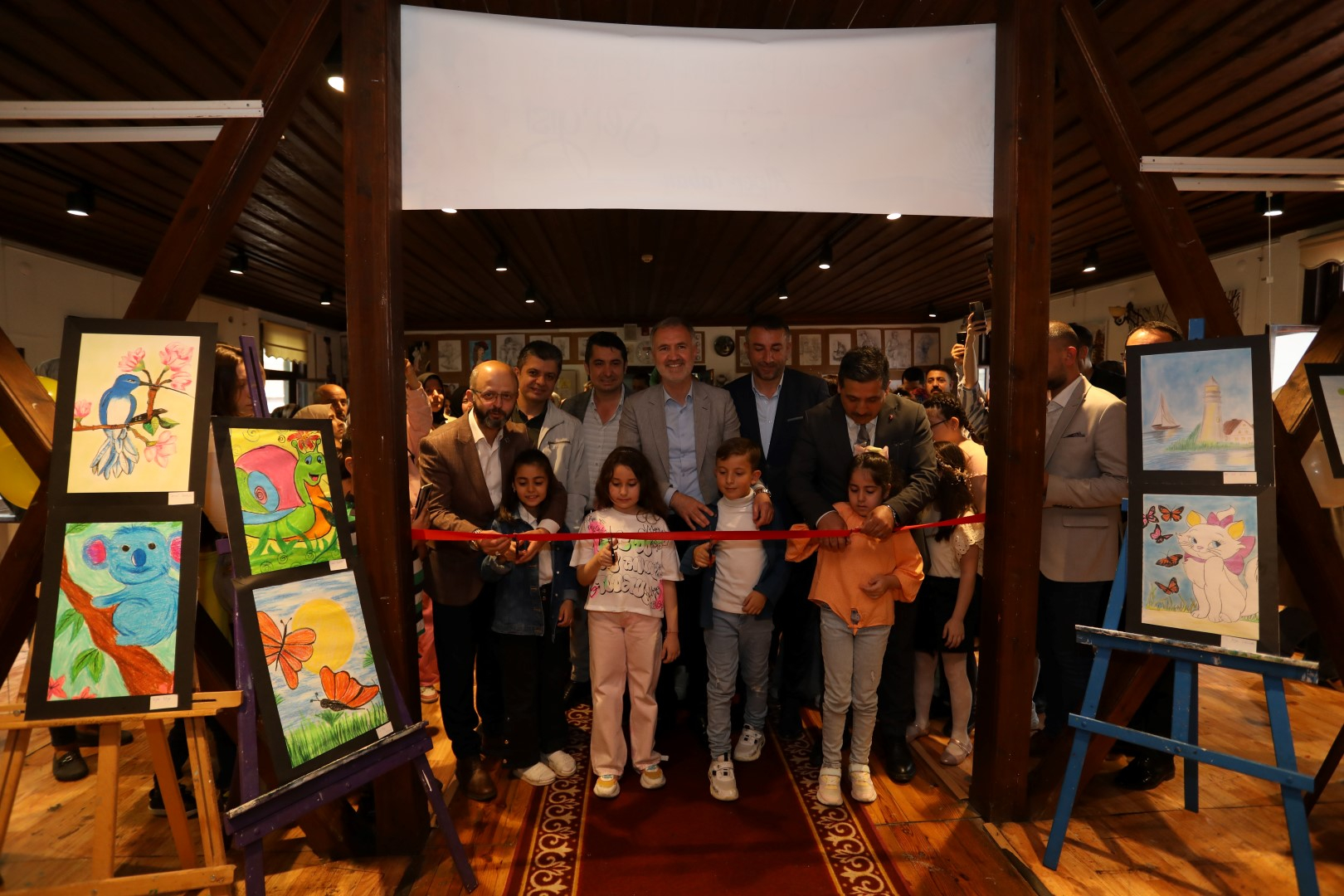 İnegöl Belediyesi Çocuk Resim Atölyesinde eğitim alan 8-13 yaş aralığındaki 62 kursiyerin yaptığı resimler, düzenlenen sergiyle görücüye çıktı.