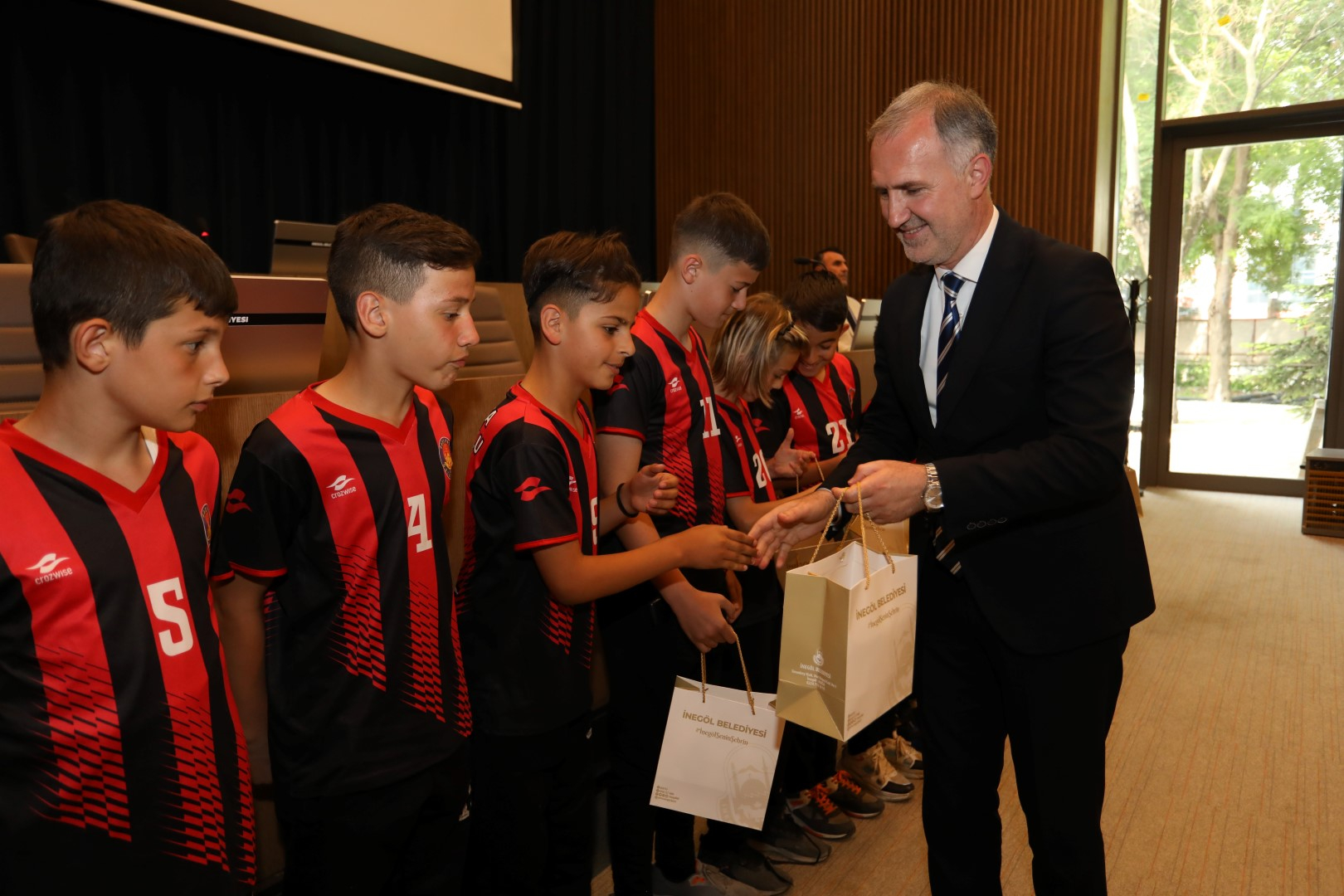 İnegöl Belediye Haziran ayı olağan meclis toplantısı Çarşamba günü yapıldı. Meclisin açılışında, Salı günü oynadıkları final maçını kazanarak Türkiye Şampiyonu olan ve İnegöl’e büyük bir gurur yaşatan Gazipaşa Ortaokulu futbol takımı da hazır bulundu. Okul idarecileri, antrenörler ve sporcular şehir adına meclis huzurunda ödüllendirildi.
