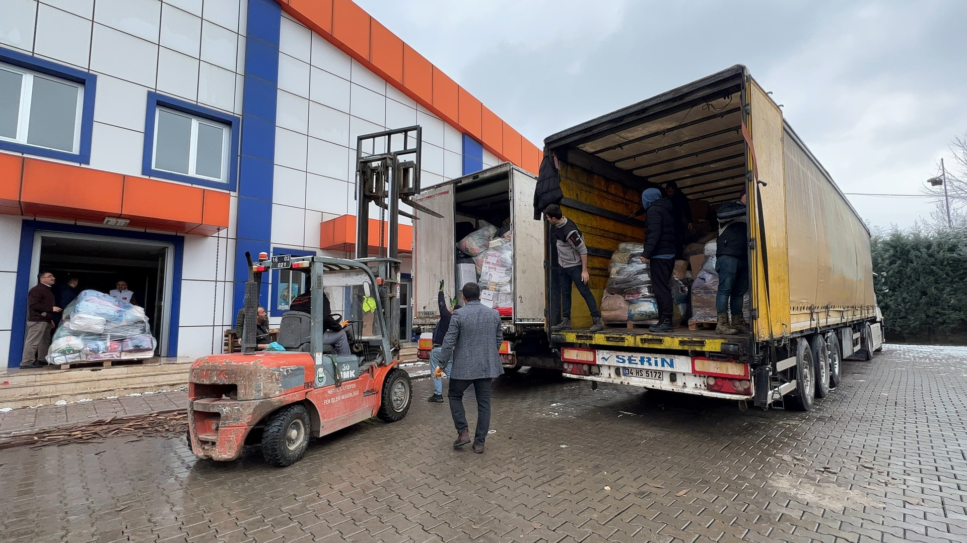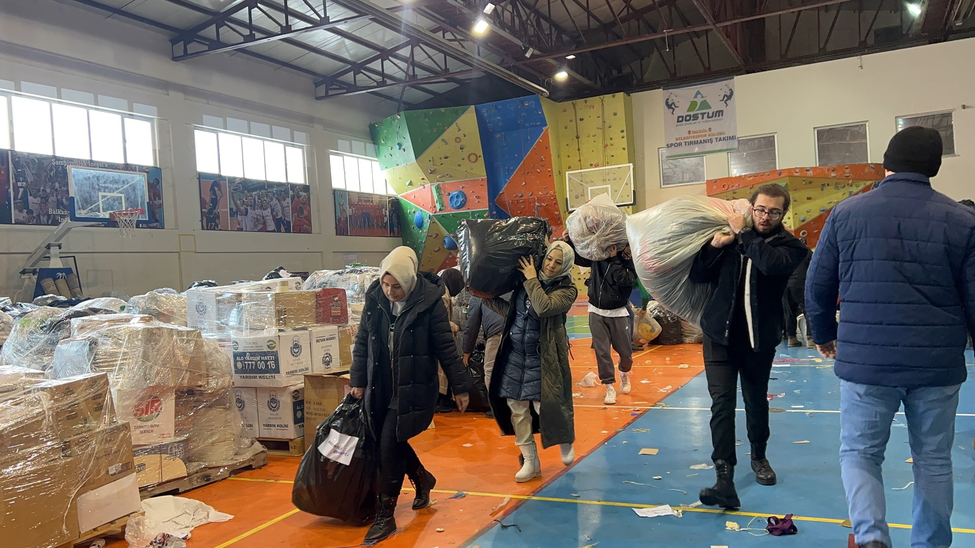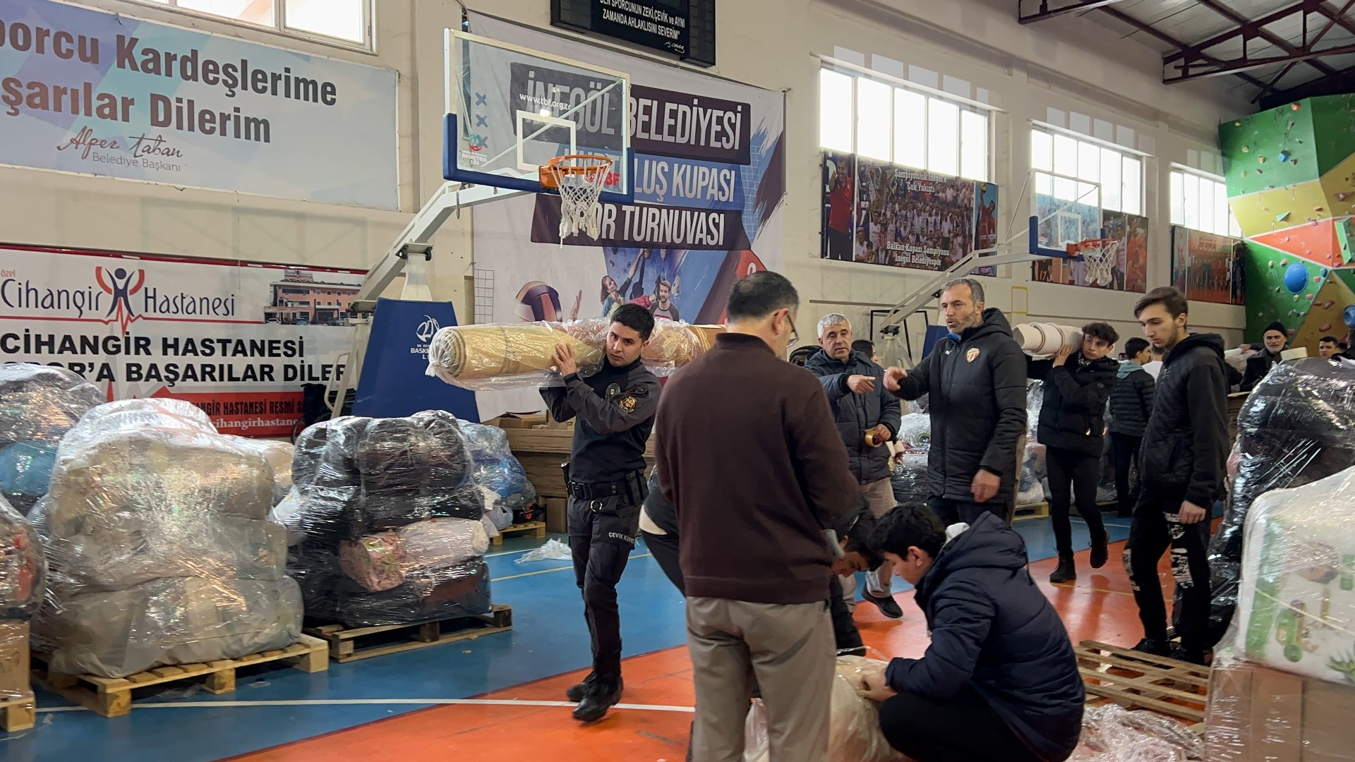 Bugün Yunus Emre Spor Kompleksi ve Kültürpark içi Spor salonunda devam eden yardım malzemesi toplama çalışmalarına İnegöllü gençler, belediye ekipleri, kadınlar, öğrenci ve öğretmenler, sivil toplum kuruluşlarının temsilcileri, polis ve jandarma ekipleri ile gönüllü vatandaşlar hem paketleme hem de tırlara yükleme işlemine destek veriyor. Yüklenen tırlar vakit kaybetmeden deprem bölgelerine ulaşmak üzere yola çıkıyor.