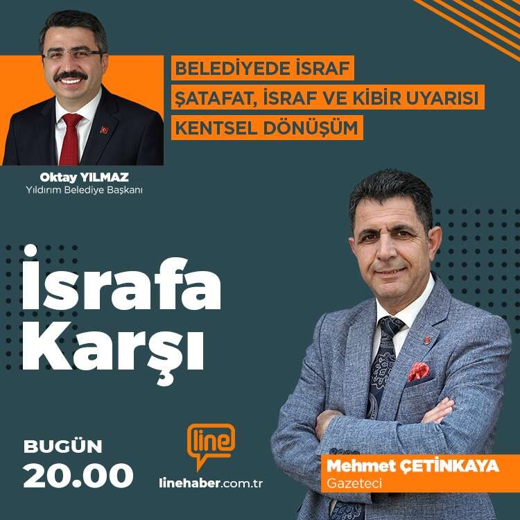 Mehmet Çetinkaya’nın bu haftaki konuğuYıldırım Belediye Başkanı Oktay Yılmaz olacak. Yılmaz, bugün saat 20.00’de Line TV ekranlarında, ’Belediyede Tasarruf’ ve ‘Geri dönüşüm Çalışmaları ve Akılcı İmar Uygulamaları ile Sağlanan Tasarruflar’ konularını üzerine deneyim ve görüşlerini paylaşacak.