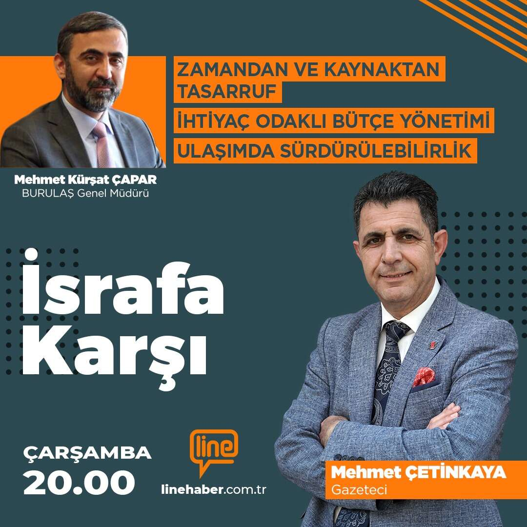 a Gazete Genel Müdürü ve köşe yazarı Mehmet Çetinkaya, yine Türkiye genelinde geniş bir izleyici kitlesi bulunan Line Tv kanalında farklı bir içerikle ekranlara konuk oluyor. Bursa'dan dikkat çekici içerikleriyle 16 yıldır karasal ve uydu yayınına devam eden Line TV’de yayımlanan ‘İsrafa Karşı’ gündem oluşturan konularıyla izleyici karşısına çıkıyor.