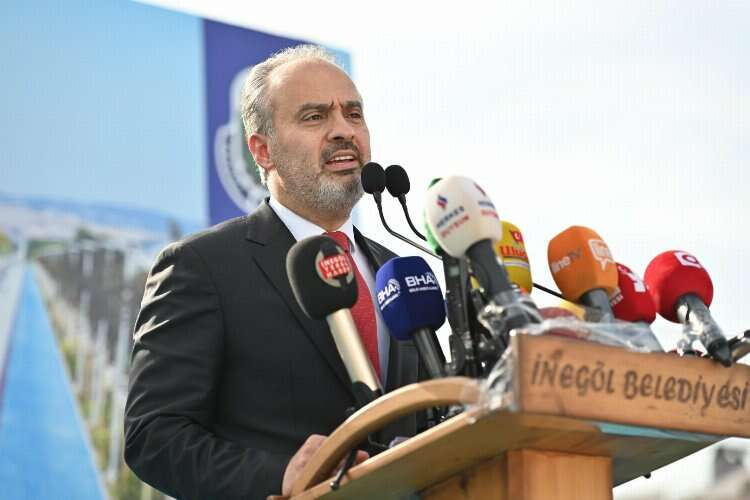 Alper Taban’ın ardından Bursa Büyükşehir Belediye Başkanı Alinur Aktaş kürsüye çıktı. Biz burada daha yeni bir proje yapar mıyız diye düşünürken, Filistin’de zulüm altında olan masum insanlar olduğunu belirten Başkan Aktaş; hangi dinde, hangi millette olursa olsun masun insanlara, camiye, kiliseye, hastaneye bomba atmanın bir vahşet olduğunu kaydederek; “İsrail bir katildir, yaptığı da katliamdır” dedi. Yapılan Kanal İnegöl projesi için de İnegöl Belediye Başkanı Alper Taban’a teşekkür eden Aktaş, “Belediye Başkanımıza ve ekibine teşekkür ediyorum. Burada hayırlı bir projeyle ilgili bir arya geldik. Bursa’nın her köşesinde yeni yeni projeler var. Deprem oldu, pandemi sürecindeyiz belediyemizin geliri düştü gibi bir anlayışın arkasına sığınmıyoruz. Bütün ilçelerimizde projeler var. Kimini biz yapıyoruz, kimini destekliyoruz. Bu projenin de bütçesinin yüzde 35’ini biz karşıladık. Güzel bir proje. Ancak yapmak bir boyutu. Asıl mesele yaşatmak. Bunlar sizin vergilerinizle yapılan çalışmalar. Ne kadar sahip çıkarsak o kadar uzun süre yaşatırız” diye konuştu.