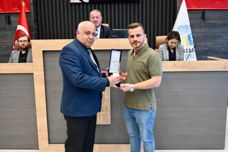Meclis toplantısı öncesinde ‘Ayın Personeli’ uygulaması kapsamında, Belediye’de Destek Hizmetler Müdürlüğü’nde görevli Emrah Arslan, özverili performansından dolayı plaketle onurlandırıldı. Söz konusu plaketi MHP Belediye Meclis Üyesi Ali İhsan Aydın takdim etti.