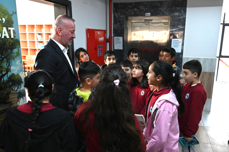İlçedeki tüm kurumları ve duyarlı vatandaşları da 14 Eylül Ortaokulu’nun yeni okul kütüphanesine kitap desteğinde bulunmaya davet eden Başkan Karabatı, “Eğitim ve öğretime hep birlikte katkı sağlayalım.” dedi.
