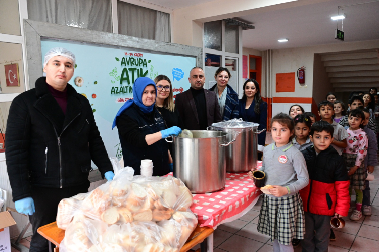 “Gıda Atıklarının Tadı Kaçtı” temasıyla düzenlenen etkinliklerde, aşevi yemeklerinden hazırlanan çorbalar öğrencilere ikram edildi. Öğrencilerin kendi bardaklarıyla etkinliğe katılmaları teşvik edilerek atık azaltımı sağlandı.