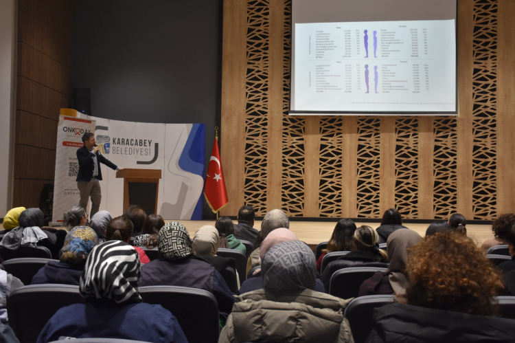 Karacabey Belediyesi, Dünya Kanser Günü kapsamında Uludağ Onkoloji Dayanışma Derneği (ONKODAY) iş birliği ile önemli bir seminere imza attı. Kansere karşı bilinç oluşturulması ve erken teşhisin önemine dikkat çekmek amacıyla düzenlenen etkinlik, Ergün Koç Kültür Merkezi'nde gerçekleşti. Özellikle kadınlar tarafından büyük ilgi gören seminere, Karacabey Belediyesi Özel Kalem Müdürü Mehtap Önler de katıldı.