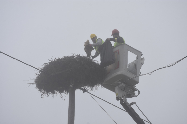 Karacabey'deki leylek yuvalarında geleneksel temizlik devam ediyor