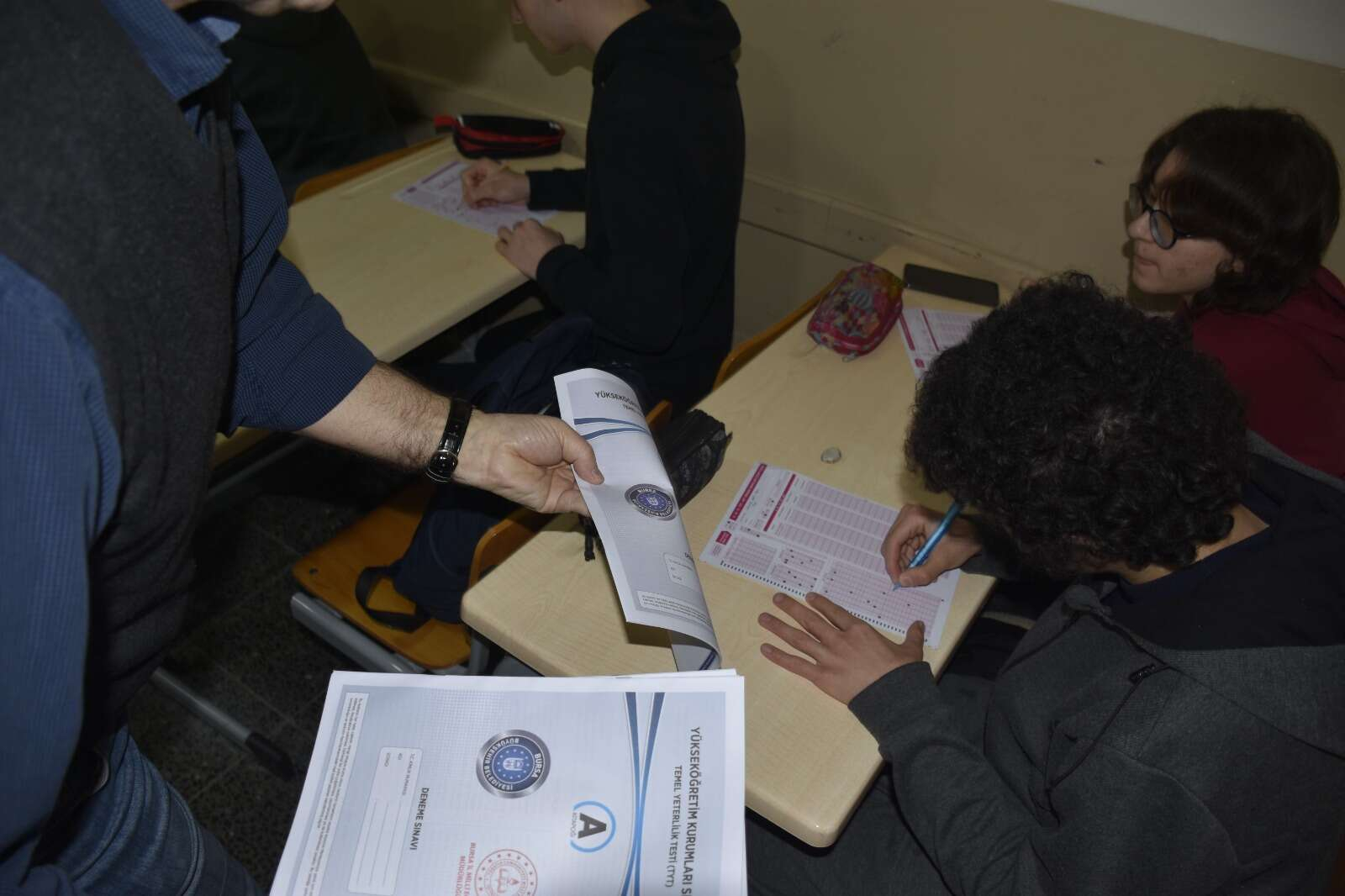 Bursa’nın çeşitli liselerinde eş zamanlı uygulanan ücretsiz deneme sınavında, 8’inci sınıflardan yaklaşık 40 bin öğrenci, 12’nci sınıflardan ise yaklaşık 14 bin öğrenci ter döktü. ‘Haydi Gençler Denemeye Değer’ sloganıyla uzman rehber kadrosu eşliğinde gerçek sınava en yakın formatta hazırlanan deneme sınavı için sabahın erken saatlerinde okullara giden öğrenciler, hem streslerini yenme hem de Bursa ve Türkiye geneli sıralamalarını görme fırsatı bulacak.